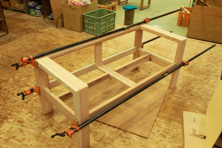 この2枚を合わせて削ることで、より心地いい座り心地を求めた、曲線に仕上げていきます。