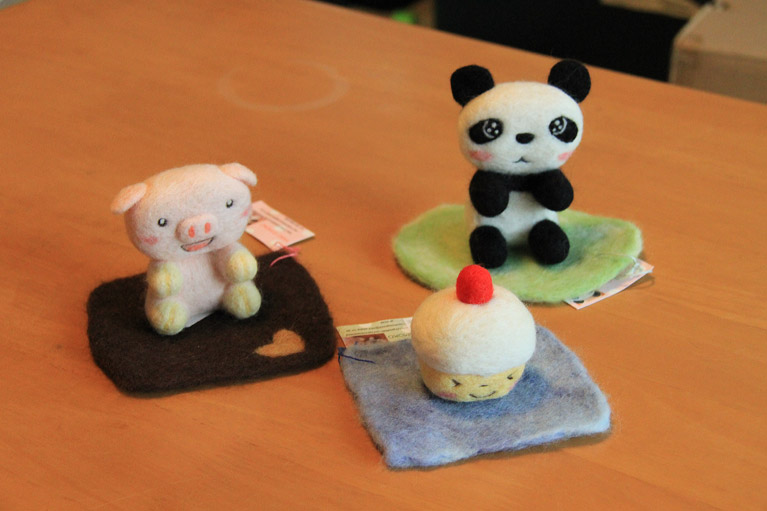 やのともこのイラストが、フェルトマスコットとして絵から飛び出しました。